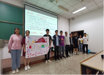 各小组分别展示完成的画报并且讲述海报的设计理念,每个小组成员都分享了自己家乡的特色包括美食,名胜古迹等,然后由主讲同学讲述红色故事,分享红色精神!