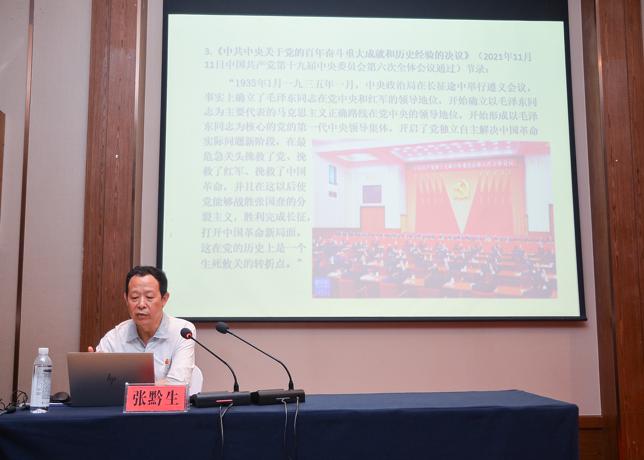 7月31日,全体同志出席开班仪式,党委书记王莉在会上作了动员讲话。她强调了本次活动组织的目的和意义,并对后续的行程安排做了简单介绍,希望大家认真学习,勤于思考,将本次所学所得用于平日工作中,为公司发展建设多做贡献。在活动安排的第一场专题教学课上,中共遵义市委党史研究室原主任、中共绥阳县委党校特聘教师张黔生同志讲授了《遵义会议与遵义会议精神》。他从遵义会议的历史功绩与伟大意义、遵义会议的大背景、遵义会议的召开情况等方面全面详实地介绍了中国共产党历史上这一具有伟大转折意义的重要会议,语言幽默,深入浅出,使参会全体同志深受启发,对遵义会议为什么是在最危急关头挽救了党、挽救了红军、挽救了中国革命有了更深刻的认识。