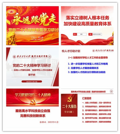 副经理都琳谈到,通过深学细悟二十大报告关于习近平新时代中国特色社会主义思想、科教兴国战略、人才强国战略、创新驱动发展战略等方面的决策部署,深刻认识到新时代国防高校数学学科的新征程和新使命。将以党的二十大精神为指引,积极对接国家重大战略需求和数学学科发展前沿,深入拓展优势方向科研资源,统筹布局交叉创新方向,搭建国际交流合作平台渠道,为构建国防发展和西部建设新篇章贡献数学智慧和力量。