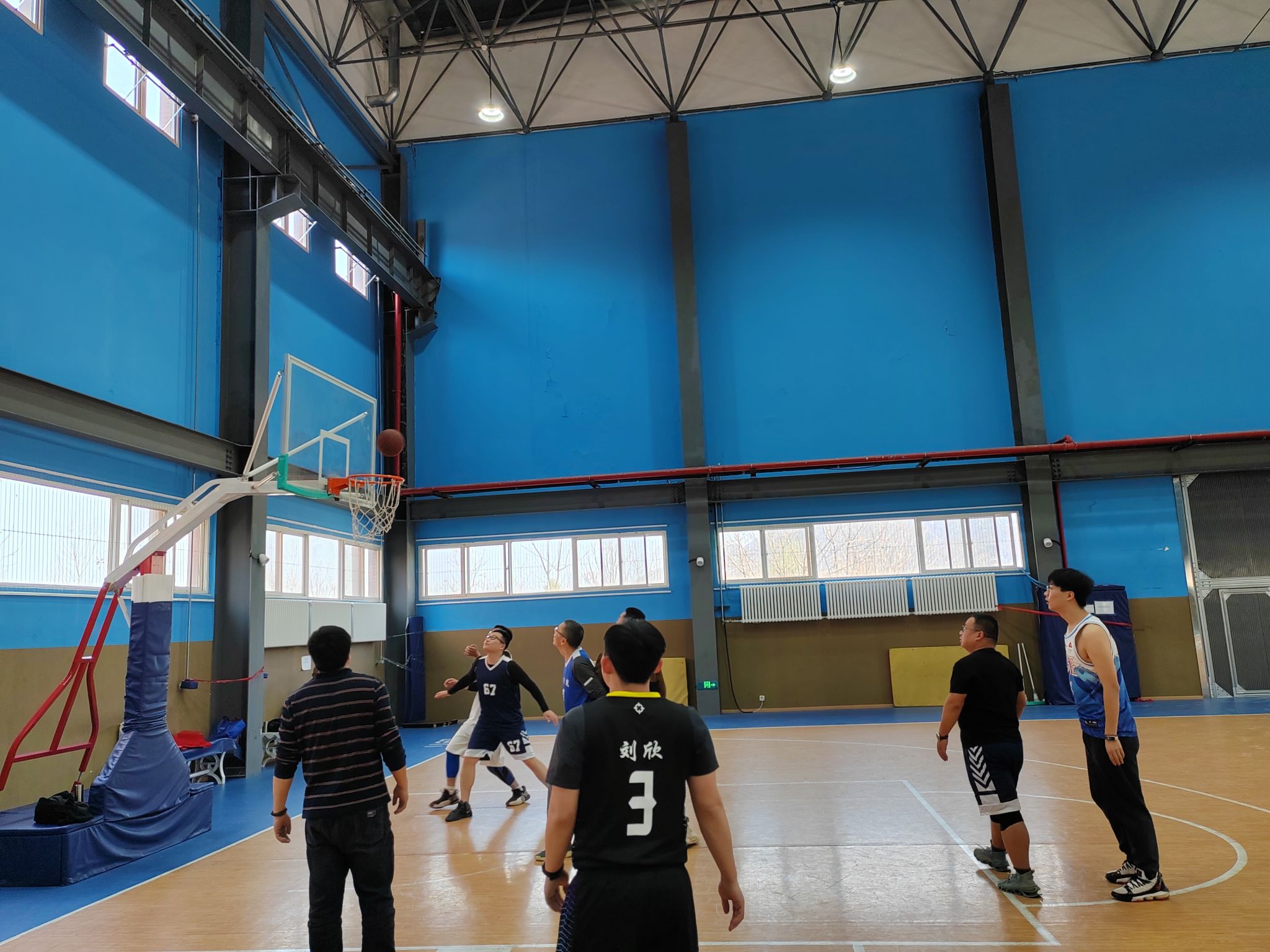 为进一步丰富公司毕业生毕业教育活动内容,增进师生情谊, 3月18日下午两点,w66利来旗舰厅工会在长安校区家属区体育馆内成功组织了一场精彩纷呈的2025届硕士毕业师生篮球友谊赛。公司工会主席佘红伟、计算科学系主任赵俊锋、应用概率系主任王亮以及公司多名教师代表、8名硕士毕业生代表共同参加比赛。