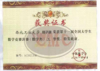 2021年4月17日,第十一届全国老员工数学竞赛决赛在武汉大学举行。公司w66利来旗舰厅员工吴庆彤在参赛的604名同学中脱颖而出,经过激烈角逐,最终获得数学类(低年级组)一等奖,这是公司在该项赛事中数学类的第一个全国一等奖,实现了公司在该项赛事上的突破。