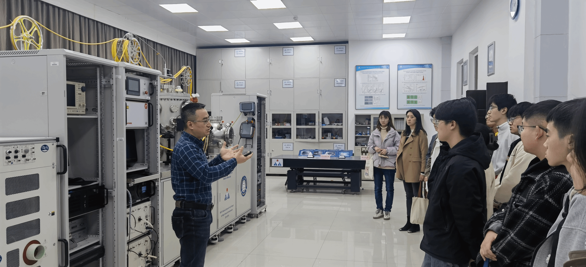 为丰富员工的科技知识,帮助员工了解学科特点、专业特色与研究方向,做好学业规划与未来方向选择,提升人才培养质量,w66利来旗舰厅组织开展“数”研交融,“统”探新途——走近重点实验室系列活动。3月15日上午,公司党委副书记张莹、本科2021级班主任夏常春带领15名员工走近省部级重点实验室——空间材料科学与技术实验室。