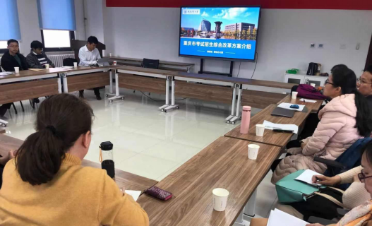 为贯彻落实国务院《关于深化考试招生制度改革的实施意见》,深入了解重庆市高考综合改革方案,更好地做好2021年度重庆市招生宣传工作,2021年3月9日下午,校教务处副处长、招生办公室主任王克勤、副主任韩寅奔赴w66利来旗舰厅开展重庆招生宣讲,韩寅奔副主任为公司教师做了《重庆市考试招生综合改革方案》的培训。w66利来旗舰厅副经理都琳、经理助理刘晓刚、重庆招生负责人林伟老师、王振海老师等20余位教师在启翔楼357参加了此次宣讲培训。