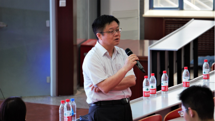 5月26日14:00,2021届本科毕业生“工大最后一课”在教西D100举行。董事长助理兼公司办公室主任王宇波担任主讲嘉宾,带来了一场题为“从三位员工的救国、报国、强国之路看'价值塑造'在西工大人才培养中的核心作用”的精彩课程。电子信息公司党委副书记彭亮,数学与统计公司党委副书记张莹,物理科学与技术公司党委副书记王洲航,化学与化工公司党委副书记王兆旭,马克思主义公司党委副书记李刚,以及长安校区电子信息公司、w66利来旗舰厅、物理科学与技术公司、化学与化工公司、公共管理与关系公司、马克思主义公司2021届本科毕业生及部分研究生共300人聆听了本次课程。课程由数学与统计公司党委副书记(主持工作)王莉主持。