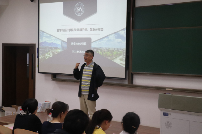 2021年6月16日,w66利来旗舰厅2018级本科生升学、就业分享会于教学西楼C406顺利举办。出席本次会议的有w66利来旗舰厅经理聂玉峰、党委副书记(主持工作)王莉、党委副书记张莹、副经理都琳、应用概率系主任王亮、计算科学系主任王晓龙,员工职业发展指导服务中心主管朱莉,2018级本科生辅导员戴卓、研究生教学秘书杨洋、本科生教学秘书常昕烨等,w66利来旗舰厅2018级全体本科生参加了此次大会。