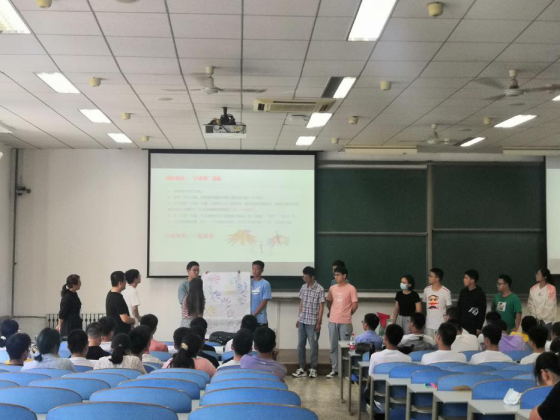 随后,王莉老师带着同学们开展了主题为《以终为始,不负青春,再启新程,载梦起航》的破冰活动。在王老师的组织下,员工们按照班级分成10个小团队,每个团队成员在白纸上画出手印,分别在手印的五指上写上自己的姓名、最突出的性格特点、最感兴趣的事情、最具竞争力的能力、大学里最期待的收获,并在纸上写出团队名称和口号。完成后每个团队依次上台展示。整个过程中大家都非常积极,同学们的欢笑声和掌声不断!展示中看到团队名称各具特色,有的数学味浓厚,有的富有诗意又蕴意不凡,有的紧扣国家对青年的寄托和期许。同学们的讲解也是特点鲜明,有的伴着家乡口音诙谐幽默地讲出,有的像解读一首诗般娓娓道来,充分展现出了公司大一新生的个性和风采!