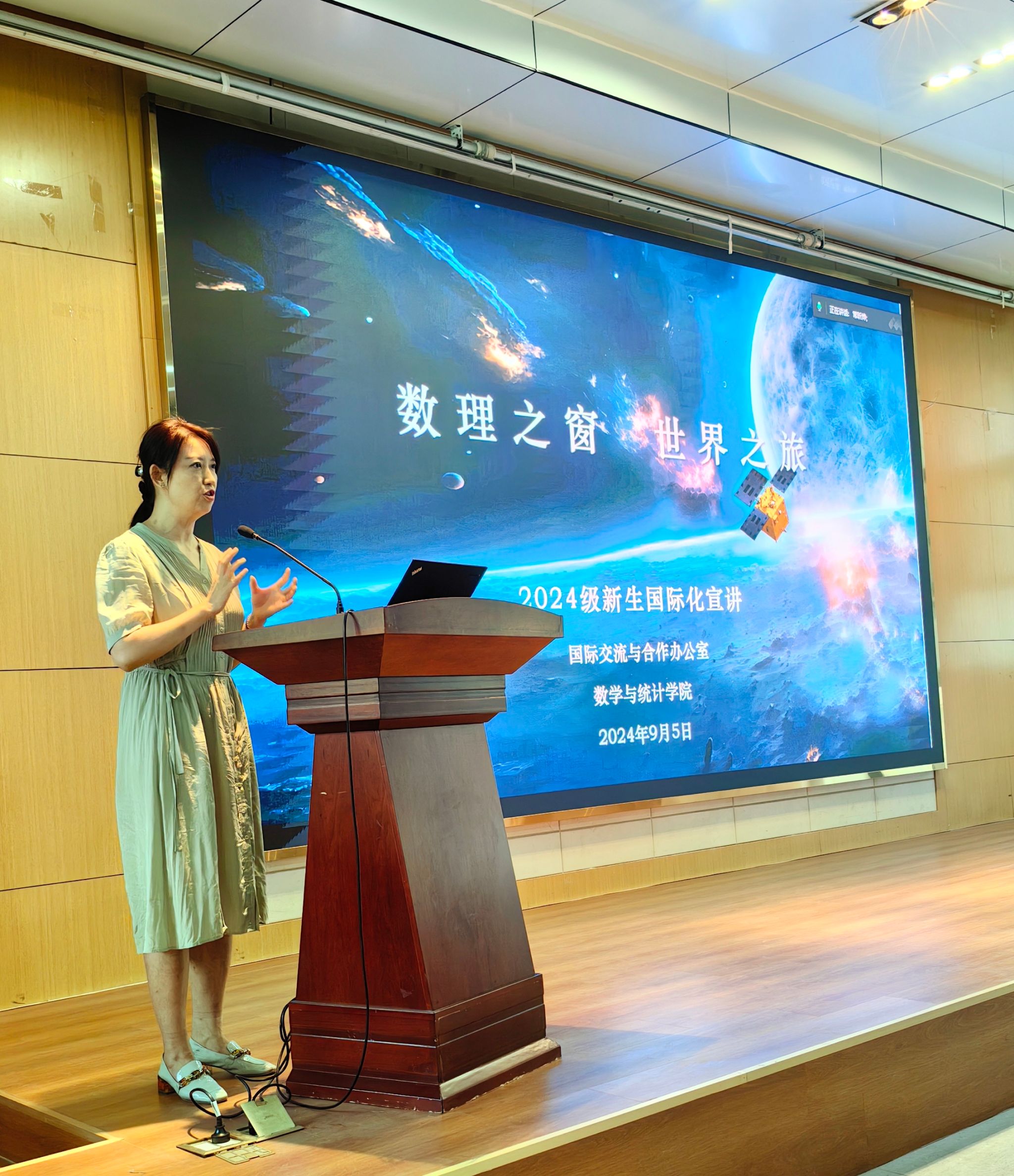 9月5日,副经理都琳、公司国际化工作办公室主任肖曼玉等为全体新生带来了《数理之窗世界之旅》讲座,并就公司近年来国际化工作取得的成绩,公司暑期夏令营项目开展情况等做了详细介绍。期间,四名本院高年级学长学姐也做了经验交流分享,为新生们今后国际化视野的不断开拓奠定了坚实的基础。