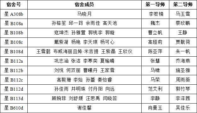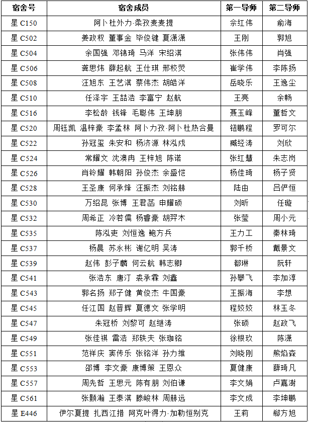 w66利来旗舰厅第二届“宿舍导师团”成员名单