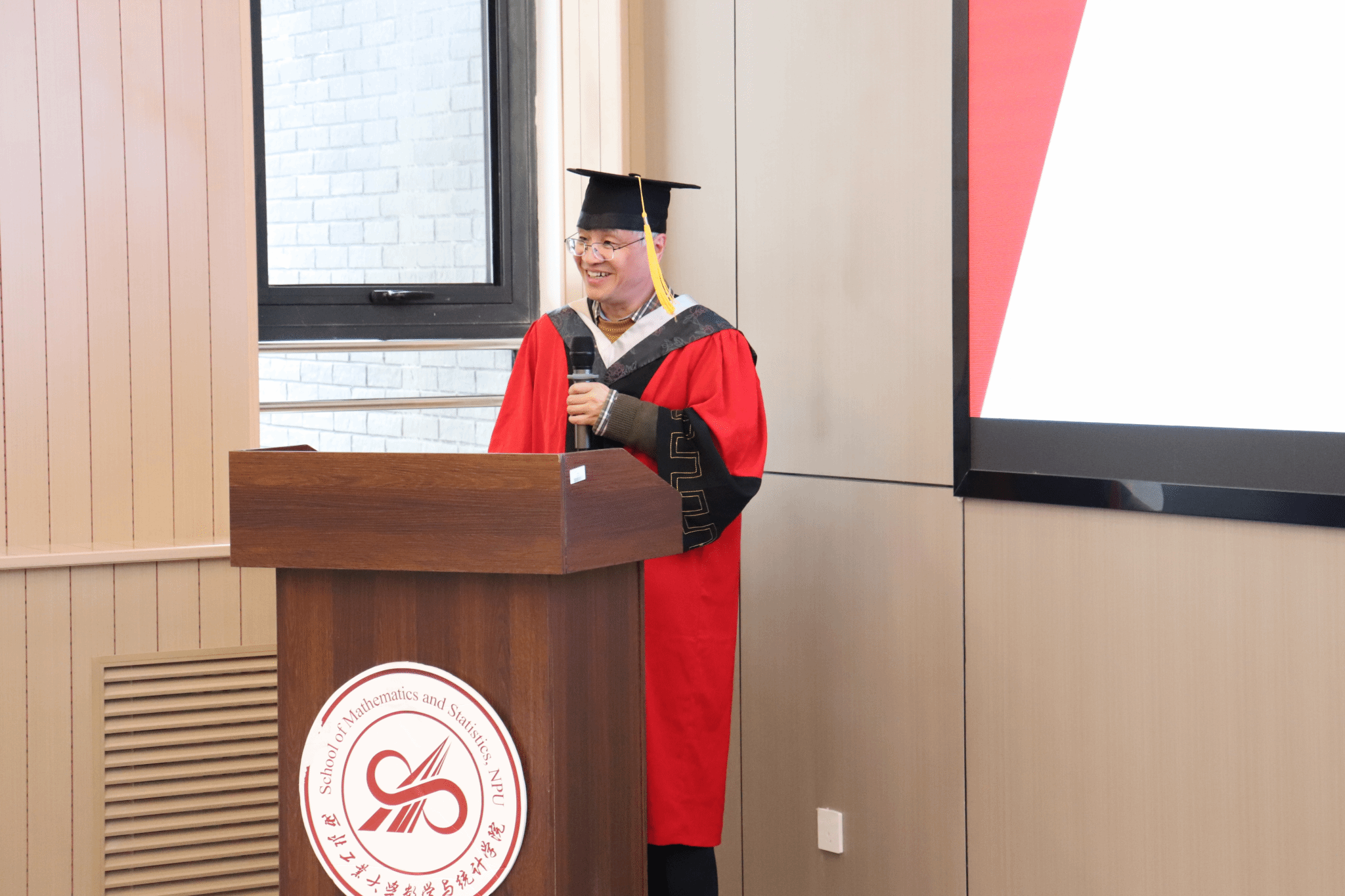 伴随着庄严的国歌,毕业典礼正式拉开帷幕。聂玉峰经理首先为典礼致辞,代表公司向94名顺利完成学业的毕业研究生(87名硕士研究生、7名博士研究生)致以热烈祝贺,向悉心指导员工的导师、默默支持的员工家人以及为公司发展和员工成长付出努力的全体教职员工表达诚挚感谢。他表示,公司见证了同学们在求学路上的拼搏与成长,大家以扎实的专业知识、创新的学术思维为公司争得诸多荣誉。聂经理结合数学与统计学的学科价值,指出其在人工智能、航空航天、国防科技等领域的重要支撑作用,并向同学们提出三点嘱托:坚守初心保持求知热忱,以专业之力追求卓越;勇担使命践行家国情怀,将个人理想融入国家发展大局;心怀温暖坚守人生底色,在追求事业的同时珍惜亲情友情、热爱生活。他寄语同学们,毕业是新的开始,愿大家带着在西工大的收获逐梦前行,常回母校看看。