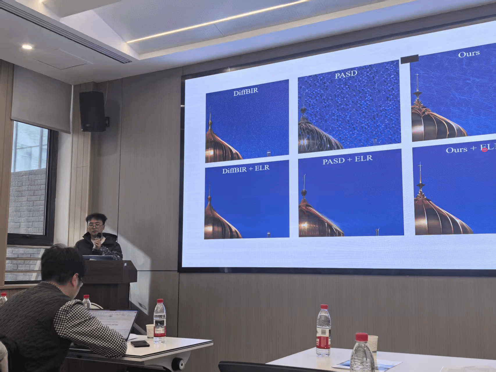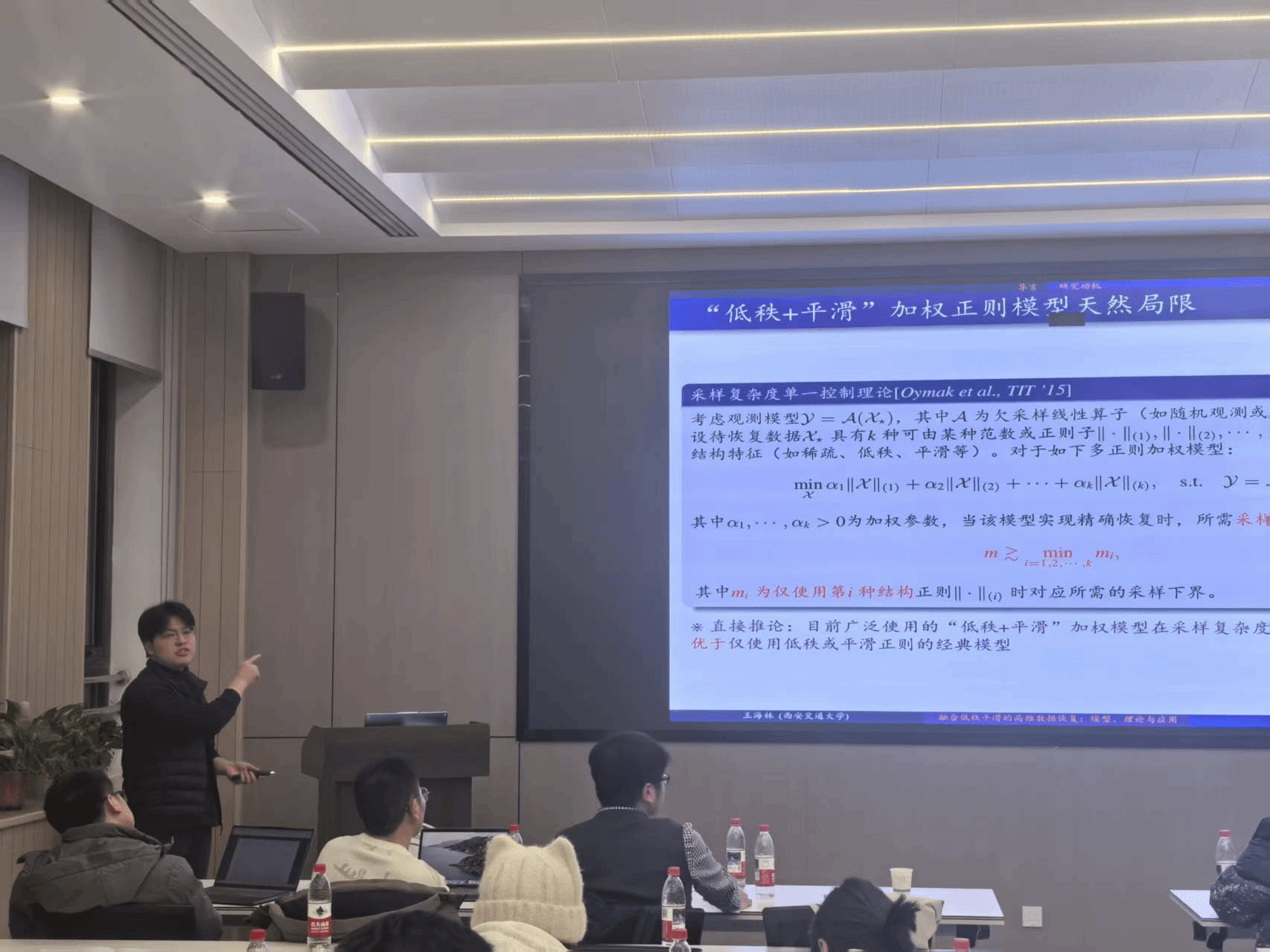 会议核心报告环节,四位专家学者带来了极具前沿性的学术分享。w66旗舰厅官网栗帅教授以“基于生成模型的真实图像超分”为题,深入探讨了语义信息引导、变分自编码迁移学习及强化学习在图像超分辨率问题中的创新应用,为解决真实场景下的图像退化难题提供了新思路;西安交通大学王仁振助理教授针对半监督学习的分布偏差问题,介绍了偏差自适应分类模型与异方差伪标签建模方法,有效提升了模型在复杂环境中的泛化性能与稳健性;西安交通大学岳宗胜教授聚焦图像复原的“自动化”与“通用化”建模,其研究成果已成功应用于华为旗舰手机影像系统,实现了技术落地与产业赋能;西安交通大学王海林博士分享了融合低秩平滑的高维数据恢复研究,提出的全新建模方法在图像视频处理、异常检测等多领域展现出优越性能。报告结束后,与会嘉宾围绕研究热点、技术难点展开深入研讨,形成了多项建设性共识。