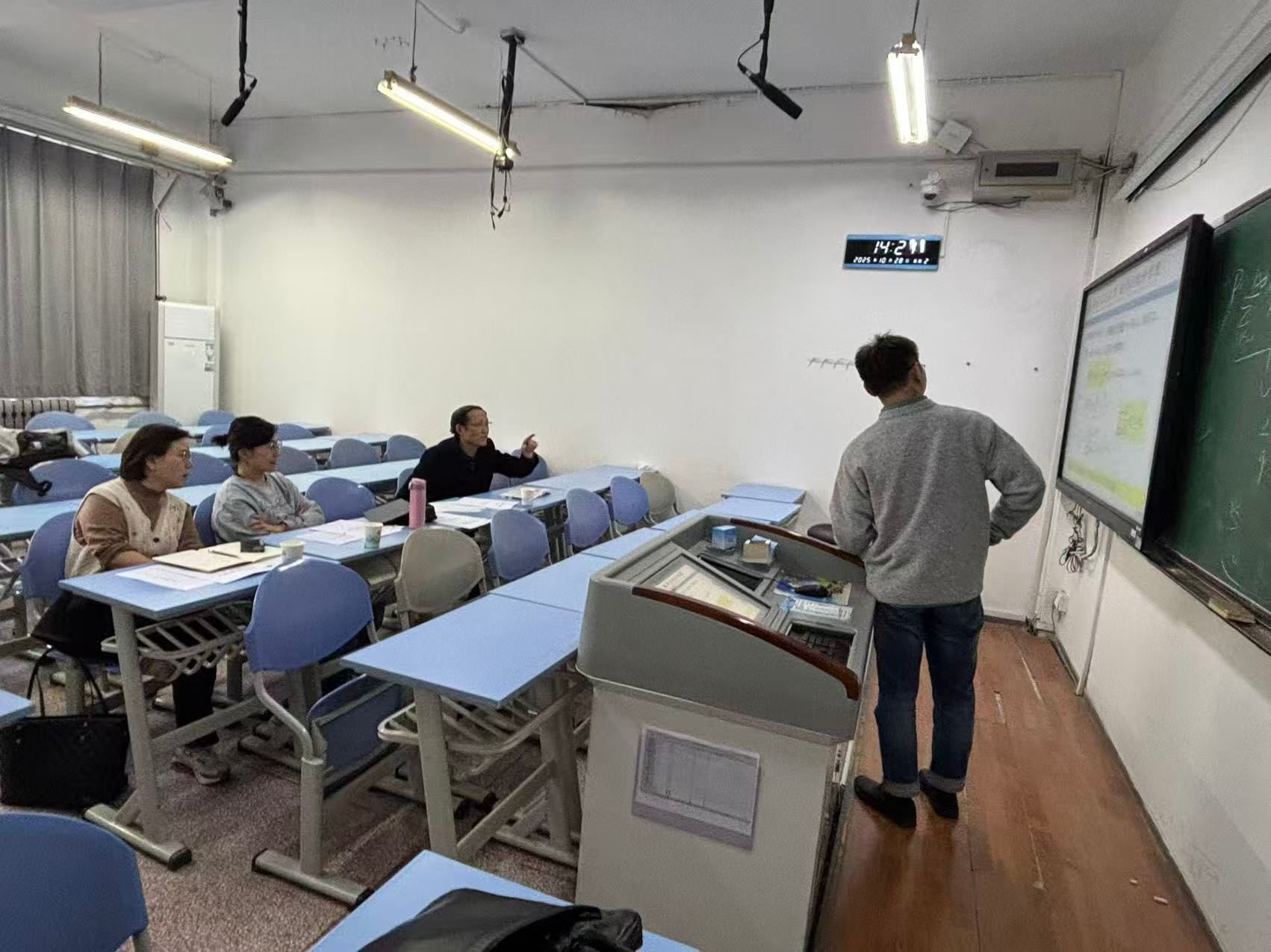 根据试讲安排,各位青年教师从所承担或拟承担的课程中选取主要内容,以PPT与板书为主要教学手段,在限定时间内完整呈现了一个知识点的授课过程。