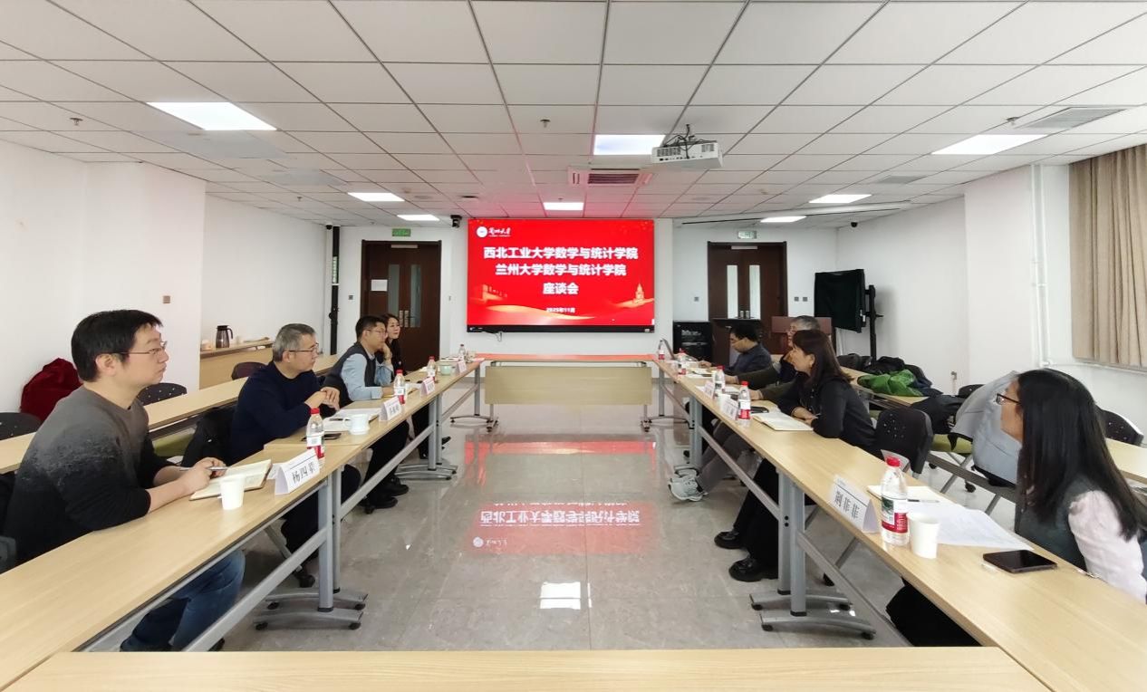 2025年11月7日,w66利来旗舰厅经理聂玉峰、党委书记王莉、副经理郭千桥、计算科学系副主任荆菲菲、教学秘书李彦吉一行赴兰州大学w66利来旗舰厅开展调研交流。兰州大学数学与统计公司党委书记乔振峰、经理邓伟华、副经理马闪、副经理杨四辈、教学秘书张静雅参与座谈。双方围绕党建、数学学科团队队伍建设、数学专业人才培养等议题展开了深入交流与讨论。