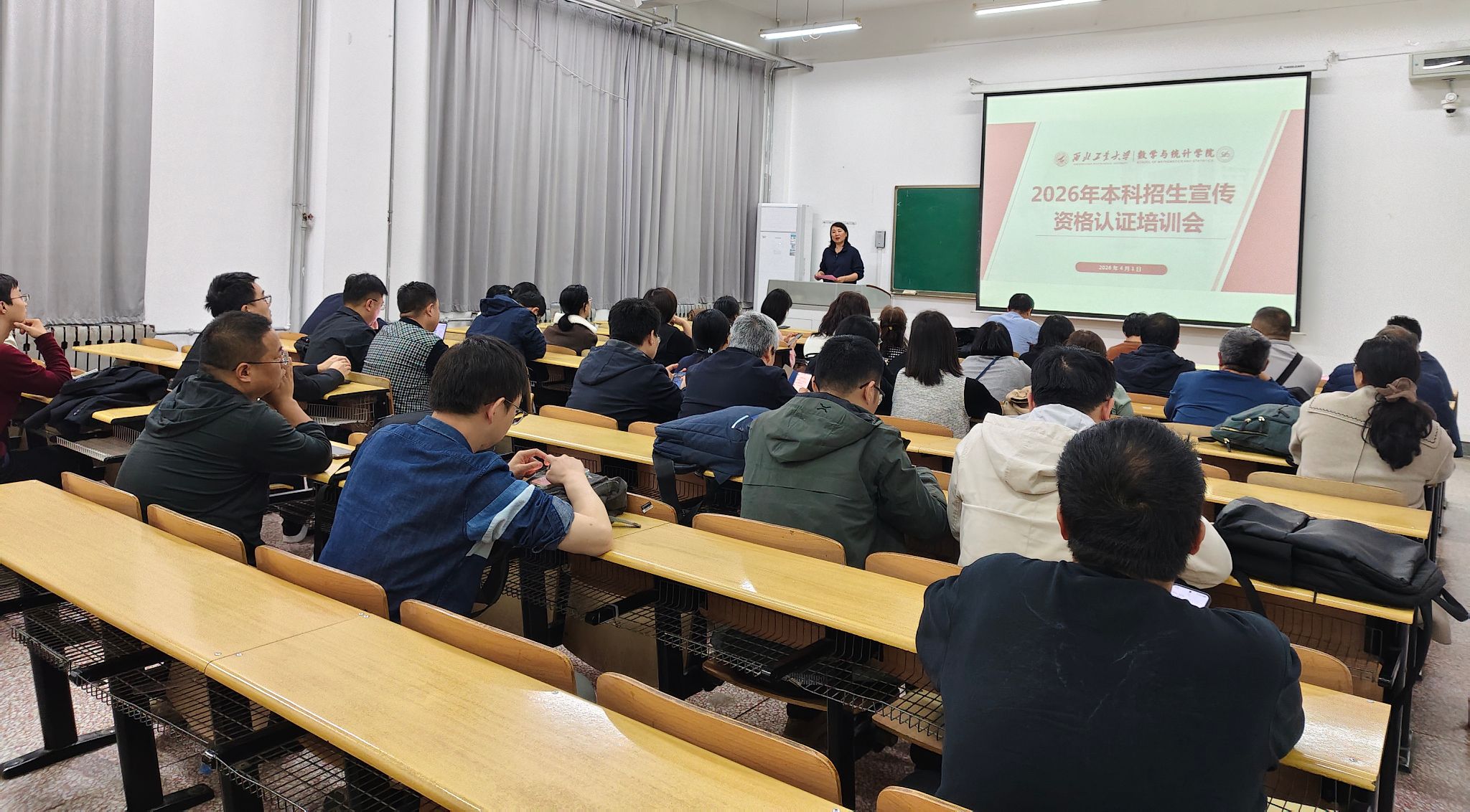 为进一步提升教师队伍的招生宣讲专业能力与水平,扎实推进2026年本科招生工作,4月1日晚,w66利来旗舰厅在友谊校区西馆XA101教室举行本科招生宣讲教团队格认证培训会。公司党委书记王莉、经理助理刘晓刚、招生工作负责人林伟、王振海及五十余位教师参加会议,会议由刘晓刚主持。